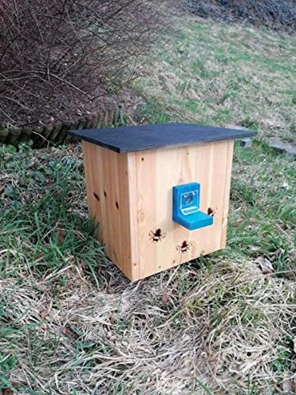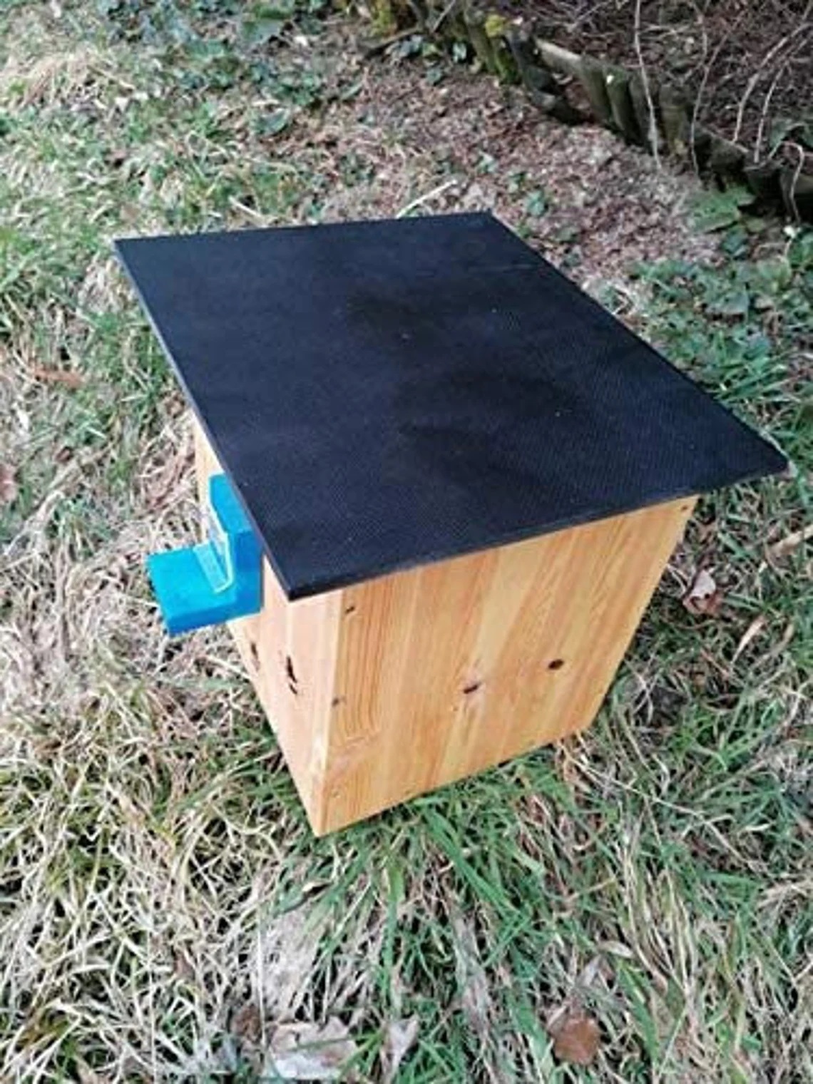 Das Dach ist Witterungsbeständig. Der Hummelkasten ist mit einer Hummelklappe ausgestattet, die ein wirksamer Schutz der Hummelkolonie vor fliegenden Insektenschädlingen wie Schwebfliegen, Wespen und Wachsmotten - den Hauptschädlingen anbietet.