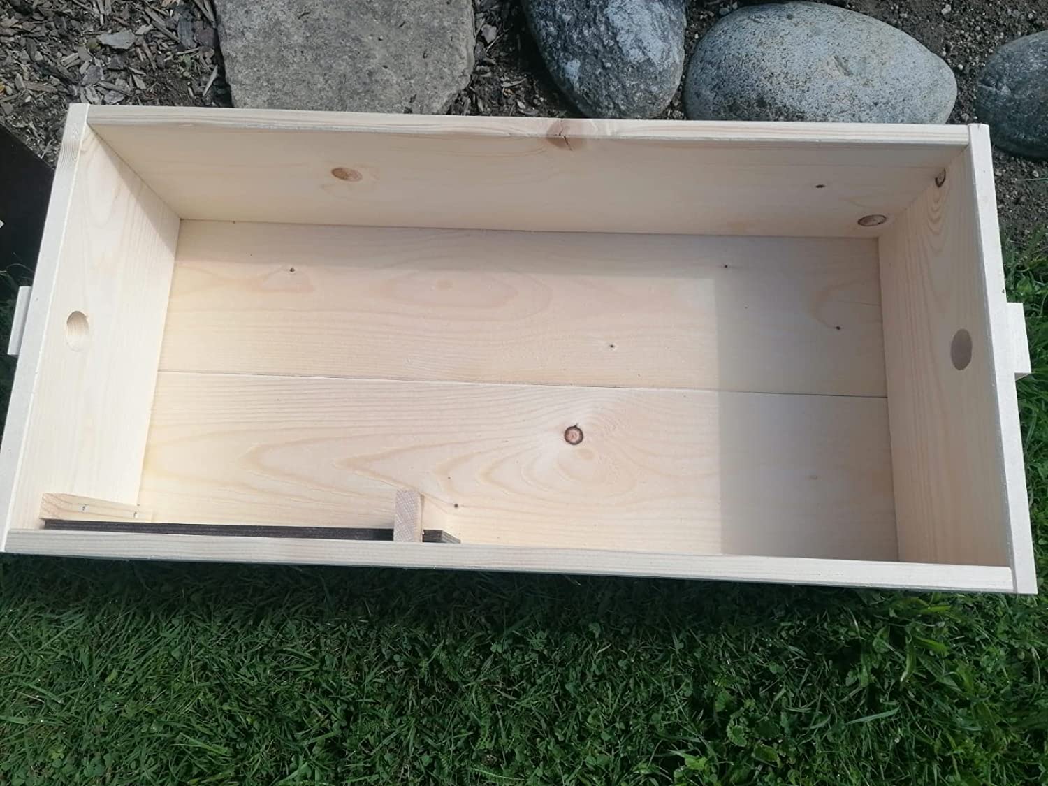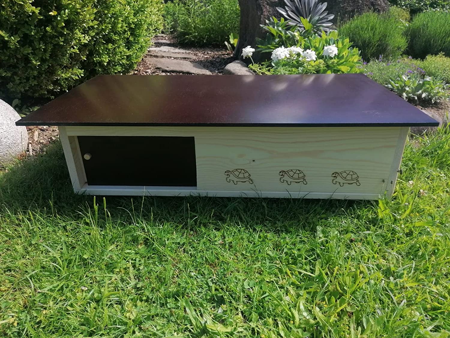 Lasierte Kiefernholz ist langlebig, witterungsbeständig und pflegeleicht. Die Lasur schützt vor Wasser und Schmutz, sodass Ihr XXL-Schildkrötenhaus viele Jahre stabil und ansprechend bleibt.